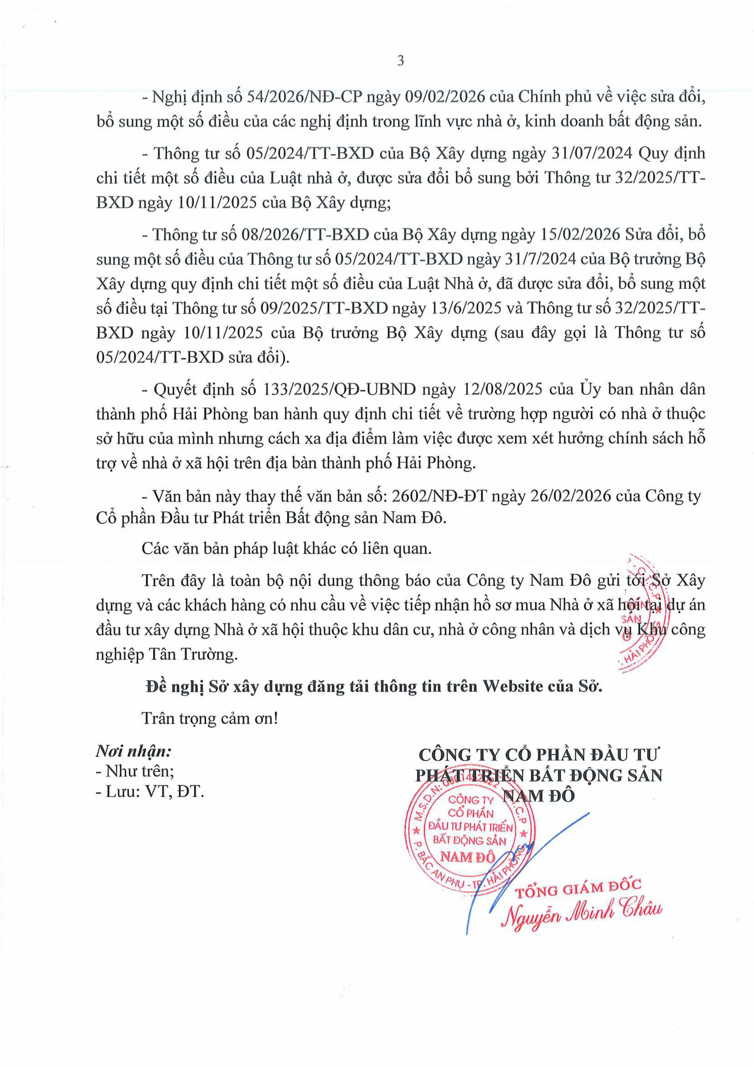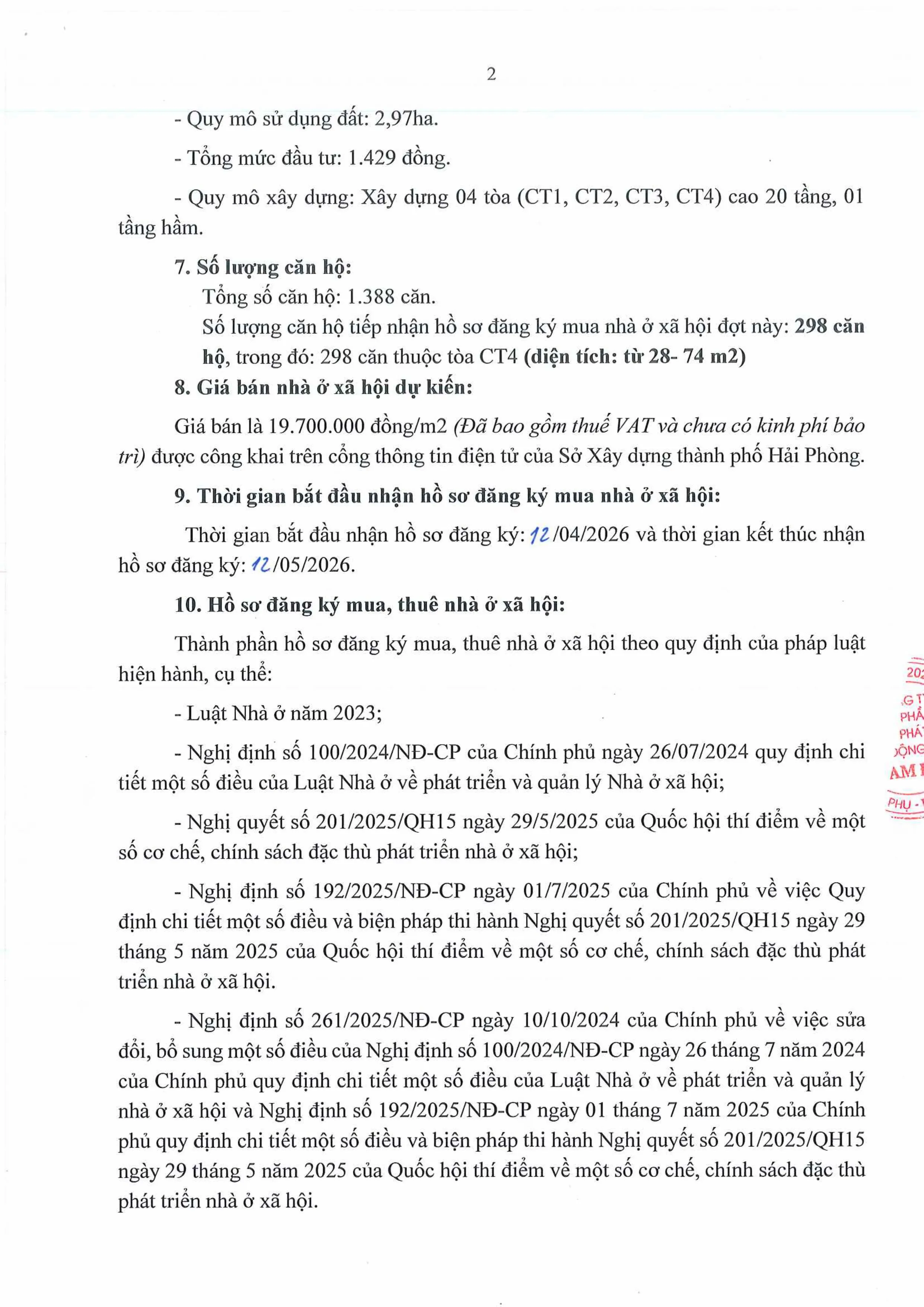 V/v tiếp nhận hồ sơ đăng ký mua nhà ở xã hội tại dự án nhà ở xã hội thuộc dự án thuộc khu dân cư, nhà ở công nhân và dịch vụ khu công nghiệp Tân Trường, huyện Cẩm Giàng